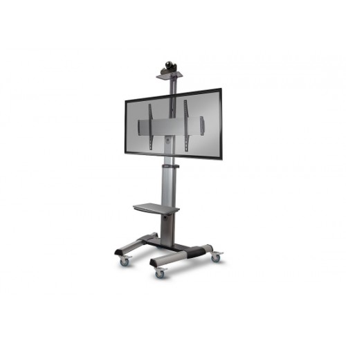 Diese mobile Halterung unterstützt großformatige Displays (LFDs) mit VESA-Abmessungen von 200x200m bis 600x400mm und sorgt für eine sichere Montage großer LED, OLED und älterer Plasma-Displays bis 70”. Die hochwertige Stahlkonstruktion trägt auch schwere Displays bis zu 50kg (110.23lb). Abnehmbare und einstellbare Ablageflächen für Tastatur oder Quellgerät sind neben dem Display ebenfalls vorhanden. Die Ablage für die Kamera ganz oben eignet sich für mobile Videokonferenzen. Alle Kabel können im integrierten Kabelmanagmentsystem ordentlich verstaut werden.