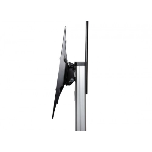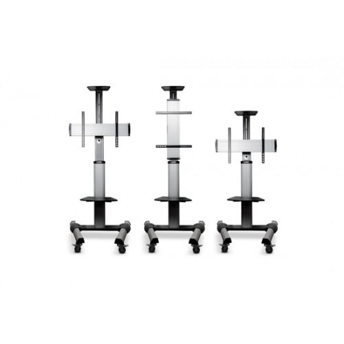 Die verstellbare VESA-Halterung kann in verschiedenen Höhen montiert und sowohl nach vorne als auch nach hinten geneigt werden. Die Displayhalterung bietet also ein flexibles und komfortables Sehvergnügen in Konferenzräumen oder Klassenzimmern. Sie kann um 90° gedreht werden, so dass Displays je nach Bedarf in Landscape- oder Portrait-Ausrichtung eingestellt werden können. Die Rollen rotieren um 360° und ermöglichen, dass die Displayhalterung bequem zwischen verschiedenen Orten hin- und hergeschoben werden kann. Umständliches Auf- und Abbauen wird dadurch vermieden.