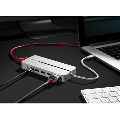 - Bietet 2 USB Ports Typ A und 1 USB Port Typ C (5Gbps), Gigabit Ethernet und einen Audio Combo Port