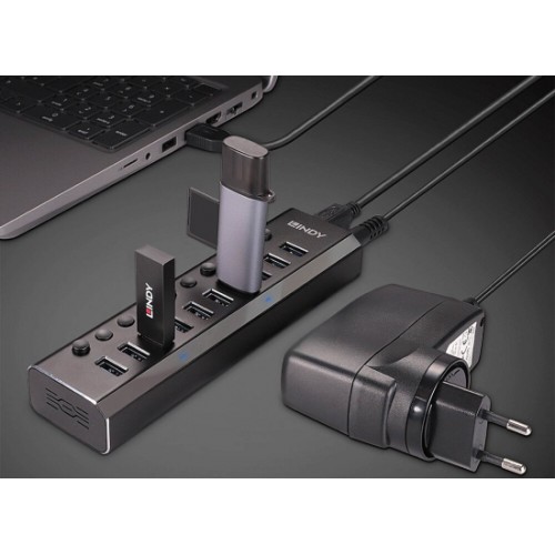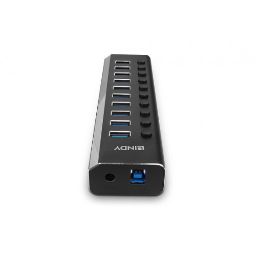 Der Lindy 10 Port USB 3.0 Hub ermöglicht dir bequemen Zugang zu bis zu 10 Peripheriegeräten sowie effektives Powermanagement. Er unterstützt Datentransferraten bis 5Gbit/s und ist abwärts kompatibel mit USB 2.0 und 1.1. Die einzeln schaltbaren Ports helfen dir, den Stromverbrauch zu reduzieren, zum Beispiel beim Anschluss externer Festplatten. Jeder Port hat seine eigene LED-Statusanzeige.