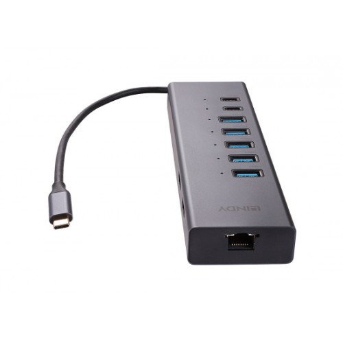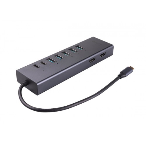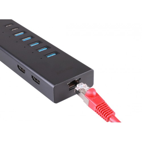 - Ausgänge: 5 x USB Typ A (Buchse), 1 x USB Typ C (Buchse), 1 x RJ45 (Buchse), 2 x HDMI (Buchse)