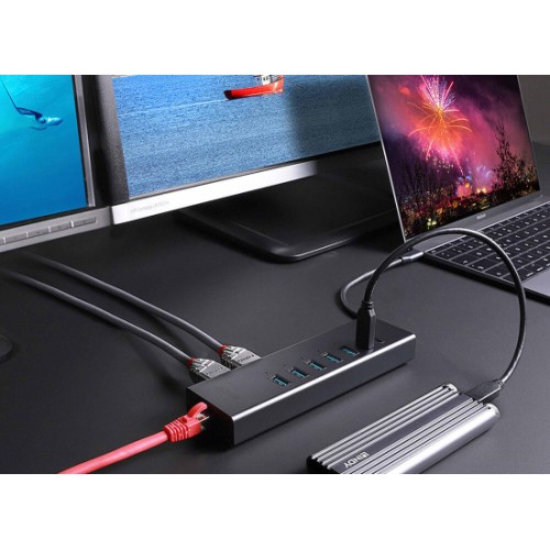 Durch die Unterstützung des DisplayPort Alternate Mode über den USB-Anschluss Typ C ist es möglich, ein HDMI Display mit Auflösungen bis 8K 30Hz an den Laptop anzuschließen. Die Docking Station unterstützt auch Auflösungen bis 4K 120Hz, so dass sie optimal geeignet ist für 8K-Spiele-Streaming oder hochauflösende 8K-Videobearbeitung. Für schnelle Datenübertragung stehen drei 10Gbit/s USB Ports zur Verfügung (3x USB Typ A und 1x USB Typ C) und drei weitere USB-Anschlüsse mit Datentransferraten bis 5Gbit/s.