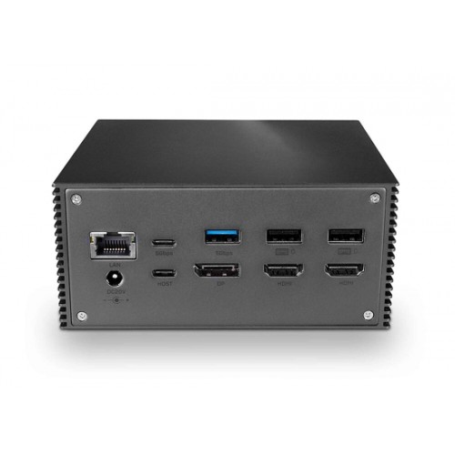 - Verbindet über ein einziges Kabel einen DisplayPort- und bis zu 2 HDMI-Bildschirme sowie USB-Peripheriegeräte mit einem Laptop und versorgt diesen gleichzeitig mit Spannung