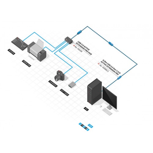 Diese 8m USB 3.2 C/A Aktivverlängerung kann allein oder als Teil des Lindy USB 3.0 Active Extension Systems Pro verwendet werden. Bei dem System handelt es sich um eine modulare Lösung, die mehrere USB 3.0 Aktivverlängerungskabel Pro und einen USB 3.0 Aktivverlängerungshub Pro kombinieren kann, um USB-Signale auf bis zu 4 USB-Geräte in bis zu 40m Entfernung (je nach Zusammenstellung des Systems) zu verteilen.