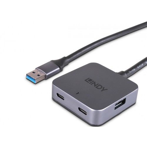 Der Lindy 5m USB 3.0 Hub nutzt eine integrierte aktive Elektronik, um die Kabellänge von bis zu vier USB-Geräten um weitere 5 m zu verlängern. Er bietet 2 USB-Typ-A- und 2 USB-Typ-C-SuperSpeed-Anschlüsse für bis zu 4 Peripheriegeräte wie Speichermedien, Drucker oder Webcams an einen mit USB-Typ-A ausgestatteten Computer über größere Entfernungen und gewährleistet gleichzeitig eine flexible Positionierung. Der Hub kann Daten mit einer Geschwindigkeit von bis zu 5 Gbps übertragen und ist zudem abwärtskompatibel mit USB 2.0 und 1.1.