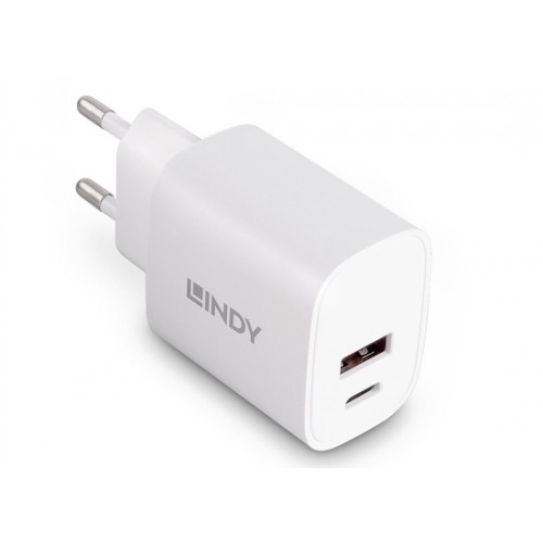 Der Lindy 20W USB Typ A & C Charger kann zwei Geräte gleichzeitig aufladen. Hierbei liefert der USB Typ C Port 20W Power Delivery und über den USB Typ A Port ist Fast Charging mit bis zu 18W möglich. Wenn beide Anschlüsse gleichzeitig verwendet werden, beträgt die maximale Ausgangsleistung 15W.