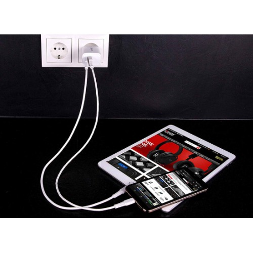 - Lädt zwei Geräte gleichzeitig bzw. versorgt sie mit Strom