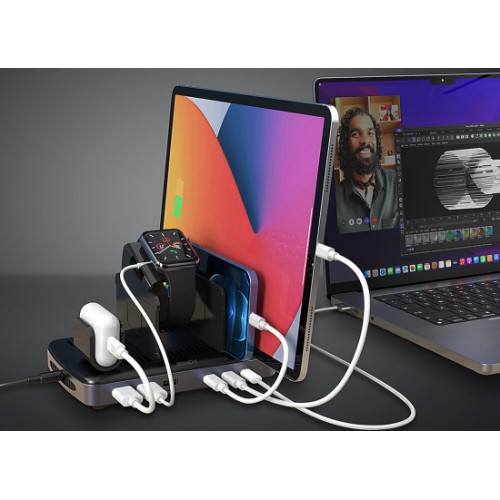 - Simultanes Laden von bis zu 6 Tablets, Smartphones, eines Laptops oder Macbooks bis 140W oder anderen USB-Geräten