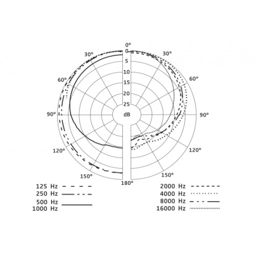 • Freifeld-Leerlauf-Übertragungsfaktor: 0,25 mV/Pa; 0,9 mV/Pa @50 Hz