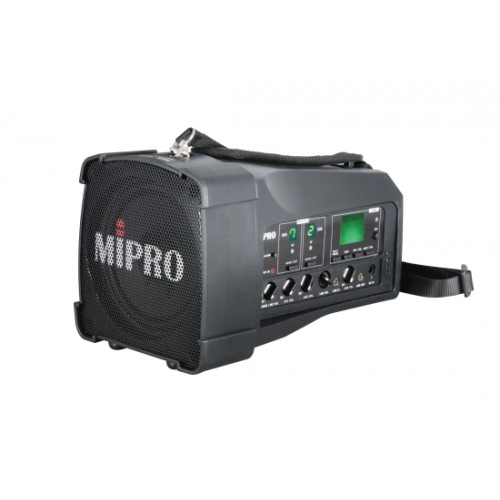 Die MA-100 ist das neue, ultra-kompakte und ultraleichte tragbare Beschallungssystem von Mipro. Mit einem Zweikanalfunkempfänger (MA-100DB), einem eingebauten MP3-Player inklusive Fernbedienung, integrierter Bluetooth-Schnittstelle und einem zusätzlichen Eingang für drahtgebundene Mikrofone ist dieses System ideal für Animationen, Führungen und ähnliche Anwendungen mit kleineren Gruppen. Der gepolsterte Schulterriemen, der integrierte Tragegriff oder das Stativgewinde machen eine extrem flexible Anwendung möglich.