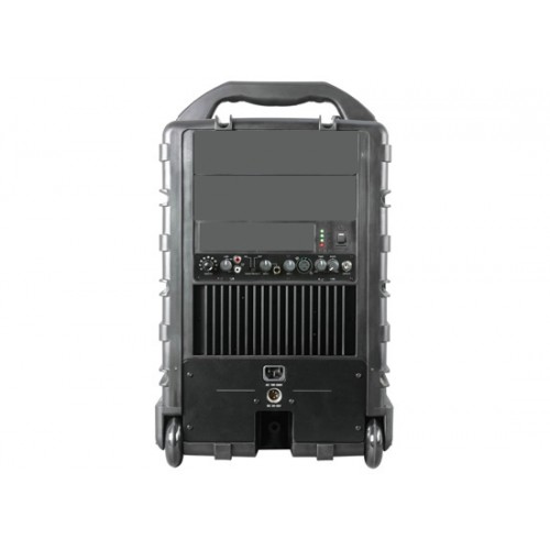 Durch den Einsatz eines Sendemoduls kann das Audiosignal an beliebig viele zusätzliche Empfänger gesendet werden. Aufgrund von zwei leistungsstarken 12V Akkus ist eine zuverlässige kabellose Stromversorgung und eine lange Betriebszeit garantiert. Der stabile Tragegriff und der Stativflansch ermöglichen einen schnellen und einfachen Aufbau in nahezu jeder Umgebung. Das eingebaute Trolley-System mit ausziehbarem Haltegriff und Rollen ermöglicht einen einfachen und schnellen Transport und gewährleistet hohe Mobilität. Extrem robust, batteriebetrieben und bedienerfreundlich, erfüllt das MA-708 jegliche Anforderungen von Veranstaltungen mit großem Publikum.