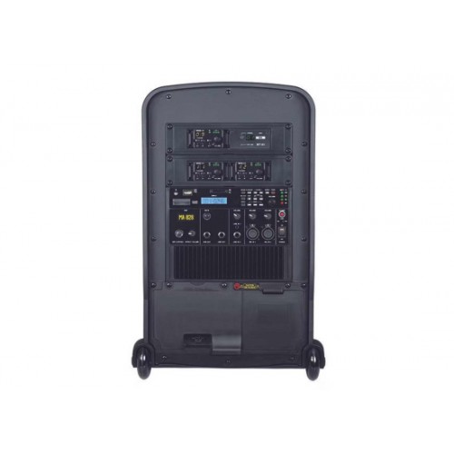 Die MA-828 ist ein kompaktes und sehr leistungsfähiges aktives Beschallungssystem. Die Verwendung von 2 Tieftönern und einem Hochtöner in der sogenannten MTM-Anordnung erzielt höchste Klangtreue und sehr hohe Lautstärken. Die beiden Tieftöner werden jeweils separat über einen Class D Leistungsverstärker angesteuert. Für den Hochtöner wird eine Class AB Leistungsendstufe verwendet. Der integrierte DSP Audiocontroller steuert die Lautstärke und Klangfarbe (EQ) und bietet Reverb (Hall) und Delay als zusätzliche Funktionen an.