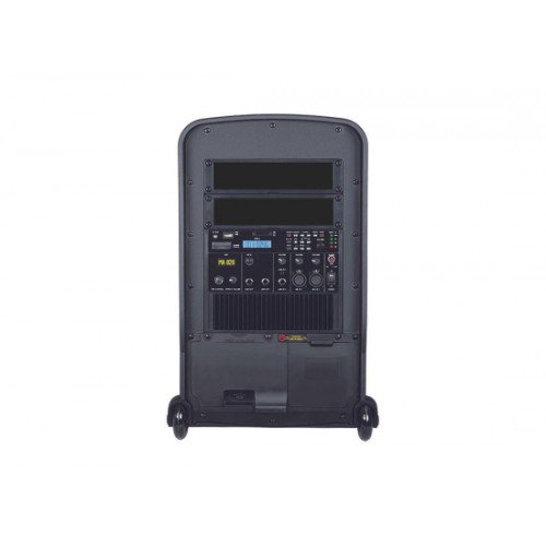 Die MA-828 ist ein kompaktes und sehr leistungsfähiges aktives Beschallungssystem. Die Verwendung von 2 Tieftönern und einem Hochtöner in der sogenannten MTM-Anordnung erzielt höchste Klangtreue und sehr hohe Lautstärken. Die beiden Tieftöner werden jeweils separat über einen Class D Leistungsverstärker angesteuert. Für den Hochtöner wird eine Class AB Leistungsendstufe verwendet. Der integrierte DSP Audiocontroller steuert die Lautstärke und Klangfarbe (EQ) und bietet Reverb (Hall) und Delay als zusätzliche Funktionen an.