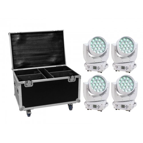 EUROLITE Set 4x LED TMH-X4 weiß + Case mit Rollen