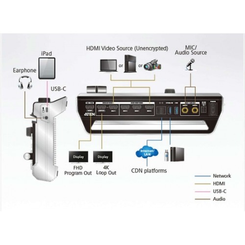- All-in-One Design zur Vereinfachung des Streaming Workflows–Integriert 1080p Videoaufnahme, Videoumschaltung, Streaming Encoder, Videokonverter, Videosplitter und Audiomischer