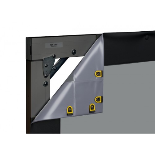 VarioClip® Projektionsfolien werden einfach gespannt und am Rahmen mit patentierten QuickClip®-Haken befestigt. Die Oberfläche ist perfekt matt, nahtlos und passt genau zum projizierten Bild.