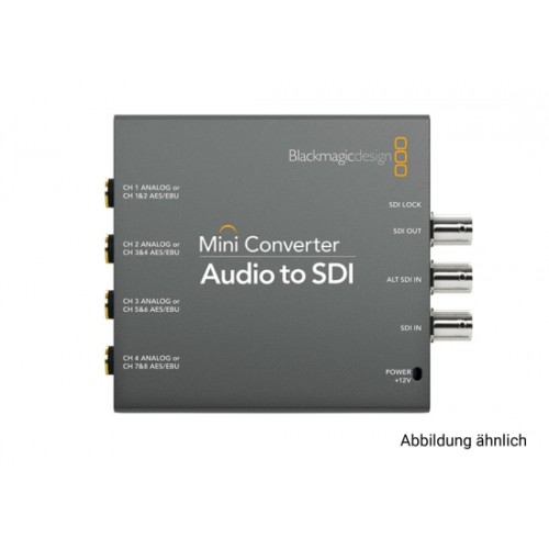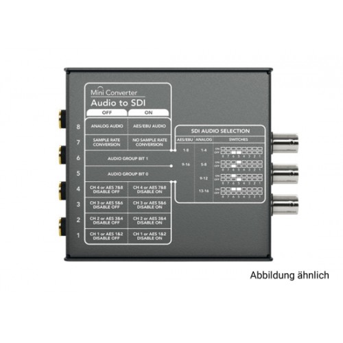 Betten Sie Audio in beliebige SDI-Quellen in SD- und HD-Formaten bis zu 1080/60 ein! Die Einbettung von Audio erfolgt in Form von Analog- oder AES/EBU-Signalen über ¼-Zoll-Anschlüsse von Geräten wie Mischern und analogen MAZen. Ein Mini Converter Audio to SDI ist perfekt zum Einbetten von Audio in SD/HD-SDI, wo kein Ultra-HD-Modell erforderlich ist oder es weniger kosten soll.