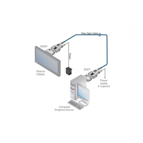 602T und 602R sind kleine steckbare Übertrager und Empfänger für DVI−Signale über LWL. Der 602T wandelt ein DVI−Signal in ein LWL−Signal, der 602R wandelt das eingehende LWL−Signal zurück in das originale DVI−Signal.