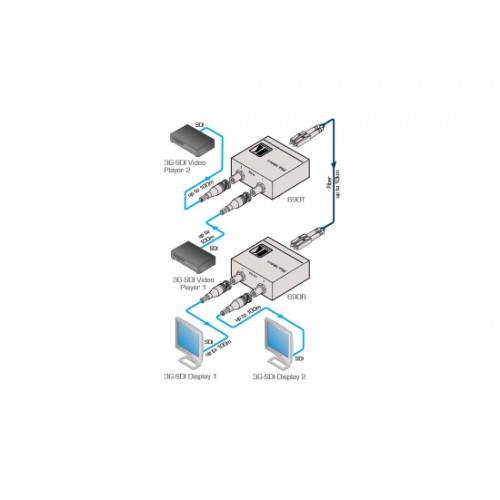 Der 690T Hochleistungs-LWL-Übertrager ist ein leistungsstarker Glasfaser-Transmitter für SDI-Signale bis zu 3G HD-SDI. Er wandelt zwei 3G HD-SDI-Signale in ein Single-Mode-Glasfasersignal um, das vom 690R-Empfänger wieder in die zwei originalen SDI-Formate zurückgewandelt wird. Das Gerät ist kompatibel mit der LWL-Matrix VS-88FO.