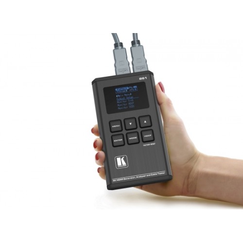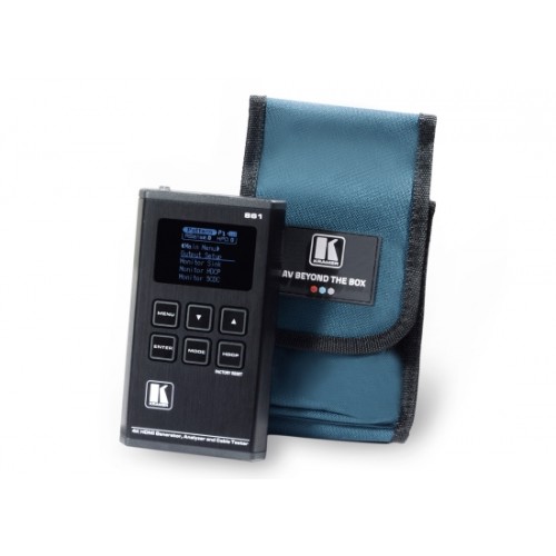 861 HDMI 18G (6G je Grafikkanal) 4K HDR Taschen−Signalgenerator, Analyzer und Kabeltester ist ein fortschrittliches und handliches Werkzeug zum Erzeugen, Testen und Verifizieren des Signalweges in Ihrem (max.) 4K @60 Hz (4:4:4) HDMI 2.0/HDCP 2.2 Ökosystem. Mit 23 integrierten Auflösungen, 11 Testmustern und über einem Dutzend AV−Analysefunktionen bietet dieses Gerät eine enorme Auswahl an Testmöglichkeiten. HDMI−Datenpaket−, EDID− und HDCP−Analyse werden zusammen mit EDID−Upload und −Emulation unterstützt. Zusätzlich kann der Status− und Steuerdatenkanal (SCDC) überwacht werden, was die Erkennung und Analyse von HDMI 18G−Signalen ermöglicht. Bis zu 8 Kanäle von LPCM−Audiotesttönen können mit einer breiten Palette von Frequenzen und Audiopegeln erzeugt werden. 861 ist tragbar und langlebig und enthält einen Lithium−Ionen−Akku, der länger als 5 Stunden funktioniert, bevor er aufgeladen werden muss, und eine hochwertige Gürteltasche.