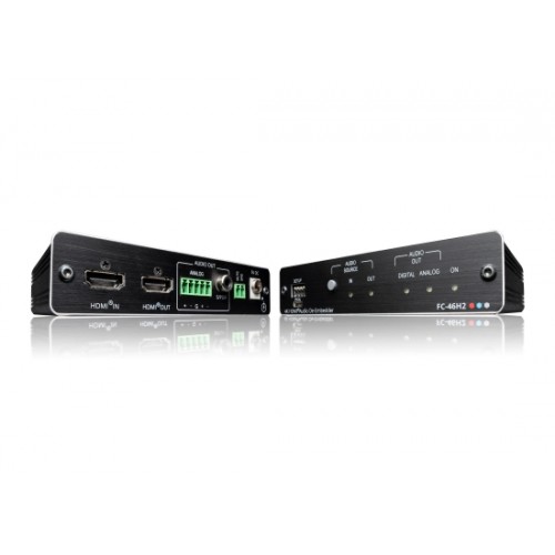 Der FC-6H2 ist ein professioneller HDMI-Audio-De-Embedder für HDMI-Signale mit einer Auflösung bis zu 4K@60Hz (4:4:4:4). Das Gerät entfernt das Audiosignal vom HDMI-Eingang oder vom HDMI-Ausgang ARC (Audio Return Channel) und gibt es gleichzeitig an die S/PDIF®- und 5-poligen symmetrischen Audioausgänge aus.