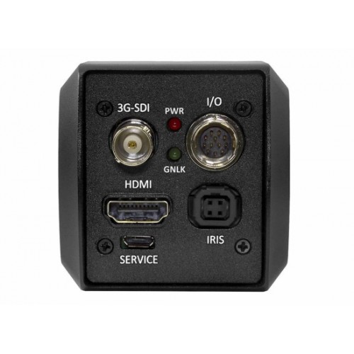 - Anschlüsse: 3G-SDI / HDMI / RS-485 (mit Klemmverbindung für 2-polige Verkabelung) / USB Port für Firmware-Updates / 3.5mm Stereo Audio Input / DC-Port für Objektive mit Blenden-Automatik