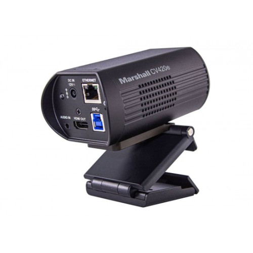 Durch Zoom und freies Navigieren auf der horizontalen und vertikalen Achse, ist die CV420e ähnlich einsetzbar wie eine PTZ Kamera. Das integrierte 4.5mm Objektiv fängt einen breiten Bildausschnitt ein. Über den digitalen Zoom sind somit dynamische Aufnahmen in Full HD möglich. Neben der manuellen Wahl des Bildausschnitts können bis zu 250 Presets angesteuert werden. Die Bedienung ist über das Webinterface, externe Software wie OBS und vMix, sowie der mitgelieferten IR-Fernbedienung möglich.