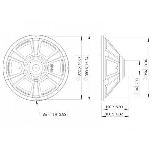 250 W AES, 8 Ohm, 97,5 dB, 45 - 3000 Hz