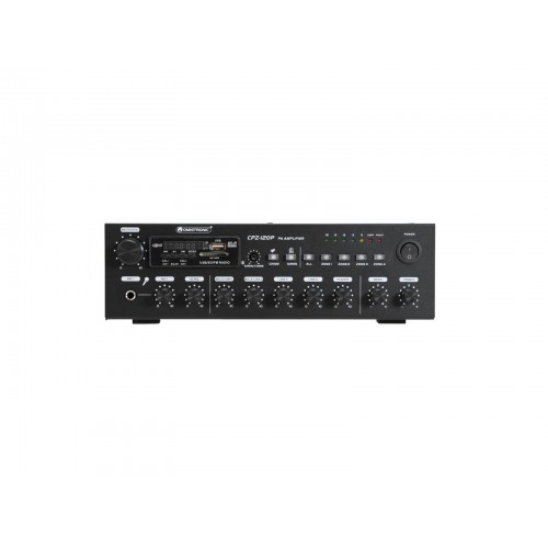 4-Zonen-ELA-Mischverstärker mit Audioplayer, IR-Fernbedienung und Bluetooth, schaltbare Zonen, 120 W RMS