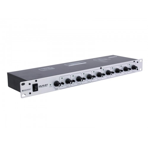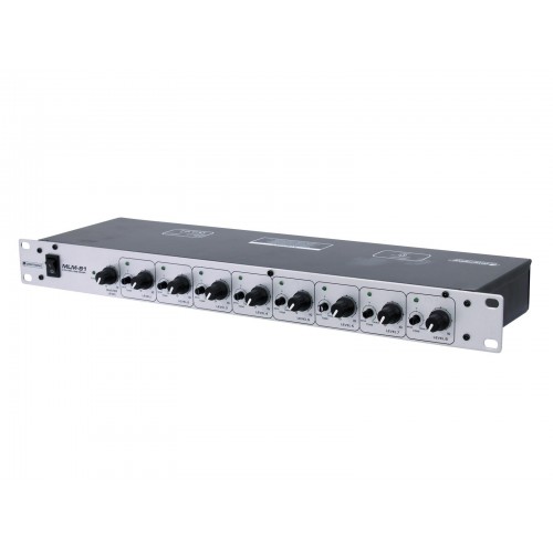 Der OMNITRONIC MLM-81kann bis zu 8 Mono-Eingangssignale abmischen und auf einen Ausgang senden. Durch individuelle Klang- und Lautstärkeregelung lassen sich die unterschiedlichen Quellen regeln und perfekt aufeinander abstimmen. Das Gerät eignet sich deshalb zum Beispiel für Podiumsdiskussionen, Symposien oder Pressekonferenzen und nimmt durch seine kompakte Bauform nur wenig Platz in Anspruch.Mikrofon-Line-Mischer, 8 Kanäle