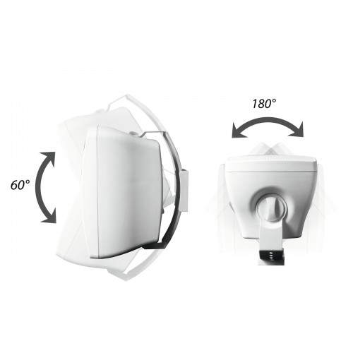 Wetterfestes Lautsprecherpaar mit HalterungDas wetterfeste Lautsprecherpaar OD-4 (Schutzklasse IP65) eignet sich bestens für Ihre Beschallungsanlagen im Innen- und Außenbereich. Die 8-Ohm-Beschallungsboxen verfügen über einen 10-cm-Tieftöner und einen 1,5-cm-Hochtöner. Das Kunststoffgehäuse ist mit einem Metallgitter und Abdeckungen über den Anschlüssen ausgestattet. Dank des schwenk- und neigbaren Montagebügels, können Sie die Lautsprecher an der Wand oder Decke in beliebigen Winkeln montieren. Der Anschluss erfolgt über Polklemmen.2 wetterfeste Lautsprecher (IP65) mit Halterung, 4" Woofer, 0,5" Tweeter, 30 W RMS