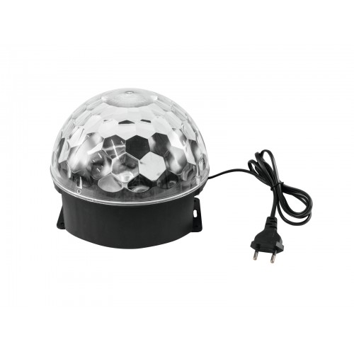Der kompakte LED BC-4 Strahleneffekt von Eurolite liefert beeindruckende raumfüllende Spiegelkugeleffekte in Wohnzimmern, Partyräumen, kleineren Clubs und mehr - und funktioniert dabei dank einfachem Plug&Play-Betrieb vollautomatisch.Die klaren und facettierten Oberflächen der Halbkugel verteilen die Strahlen wirkungsvoll im Raum. Ausgestattet ist der LED BC-4 mit sechs hellen LEDs in den Farben Rot, Orange, Blau, Weiß, Grün und Violett. Aufgrund seines superleichten Kunststoffgehäuses lässt sich der Effekt problemlos überall hin mitnehmen und aufstellen. Die Bodenplatte erlaubt auch eine Wandmontage.