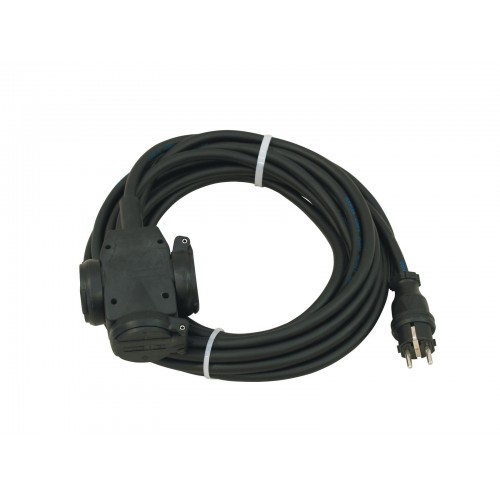 Dreifach-Verlängerung für die VeranstaltungstechnikSchwere Gummischlauchleitung mit anmontiertem Sch..