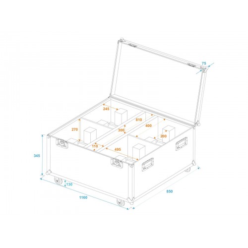 ROADINGER Flightcase 4x THA-250F mit Rollen