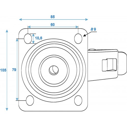 ROADINGER Lenkrolle RD-100B 100mm blau mit Bremse