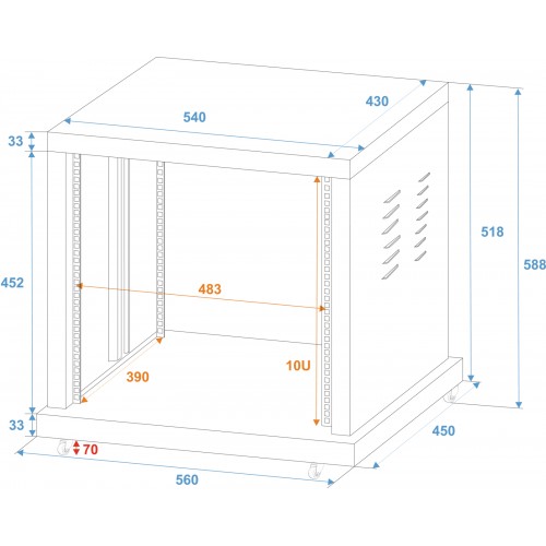 Pulverbeschichtetes Stahlrack, ideal für FestinstallationenGestanzte Rackschienen vorne und hintenIn..