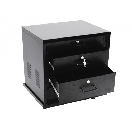 - Integrierte Stützschiene in den Seitenteilen für schwere Geräte wie Endstufen