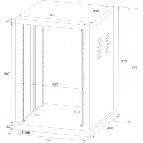 Pulverbeschichtetes Stahlrack, ideal für FestinstallationenGestanzte Rackschienen vorne und hintenIn..