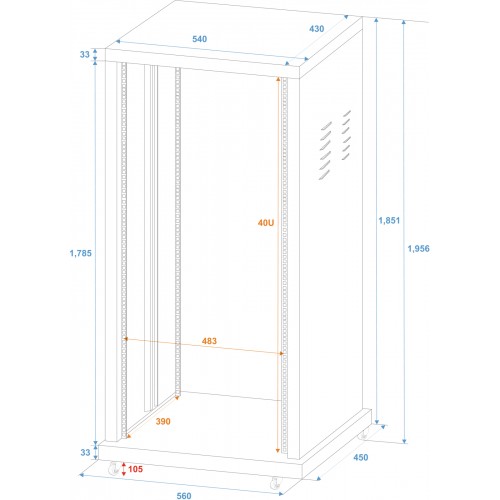 Pulverbeschichtetes Stahlrack, ideal für FestinstallationenGestanzte Rackschienen vorne und hintenIn..