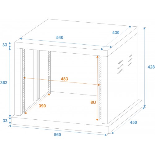 Pulverbeschichtetes Stahlrack, ideal für FestinstallationenGestanzte Rackschienen vorne und hintenIn..