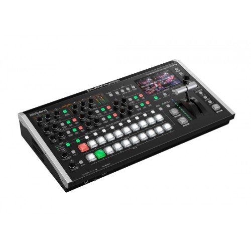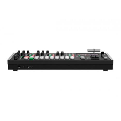 - Video-Effekte: Übergänge: CUT, MIX (DISSOLVE/FAM/NAM), WIPE (8 Typen), SPLIT (2 Typen) / Composition: PinP x 4 (QUADRAT, KREIS, DIAMANT), Keyer x 4 (Luminanz-Key, Chroma-Key), DSK x 2 (Luminanz-Key, Chroma-Key, Alpha-Key, Externer Key) / Sonstiges: Flip horizontal, Flip vertikal, Standbildaufnahme, Standbildwiedergabe, Ausgabeüberblendung (Audio, Video: WEISS oder SCHWARZ), Testbildausgabe