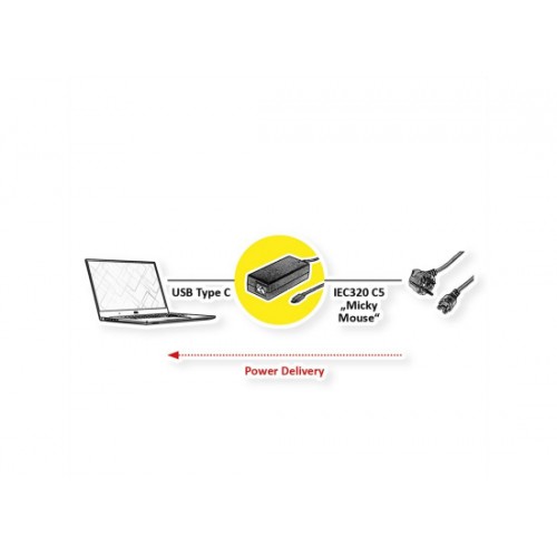 Perfekt für unterwegs zum Aufladen oder als Spannungsversorgung von USB-C Geräten weltweit. Einfach Stromkabel mit C5 Kupplung und länderspezifischem Anschluss in den C6 Stecker des USB-Ladegerätes stecken.