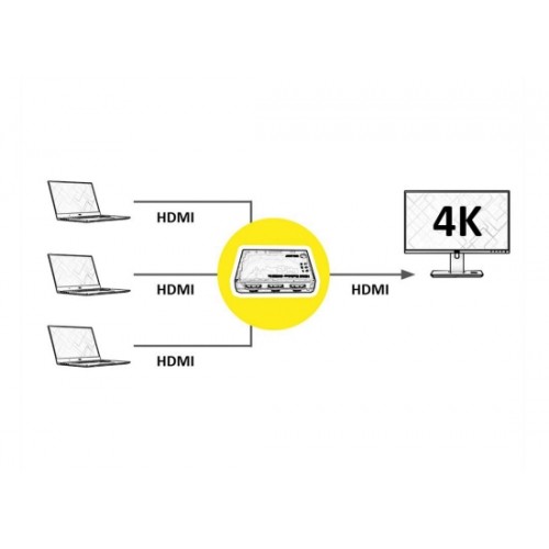 Stellt den Video-Output von bis zu 3 HDMI-Quellen auf einem Monitor oder Projektor dar.