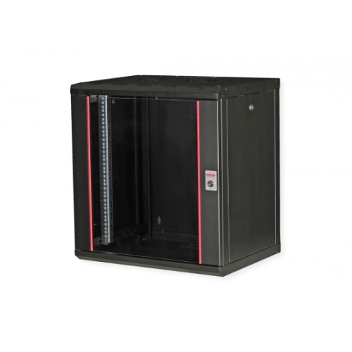 Roline Wandgehäuse Pro, 12HE, schwarz, 600x450mm, Glastür, 19''