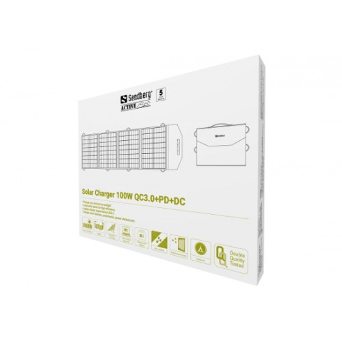 Der Sandberg Solar Charger 100 W ist ein Hochleistungs-Solarmodul, welche das Sonnenlicht direkt in Strom wandelt. Dank der großen Fläche des Moduls erzeugt das Panel genügend Strom für all Ihre Mobilgeräte - auch für Laptops, Powerbanks und PCs. Das Panel ist mit einem Schnelllade-USB-A-Anschluss, einem leistungsstarken USB-C-Anschluss sowie einem DC 5521-Ausgang ausgestattet. Leg das Panel flach hin, oder richte es auf seinem anmontierten Ständer direkt in Richtung der Sonne aus. Robust und wetterfest. Für einfachen Transport und Aufbewahrung ist das Modul faltbar.