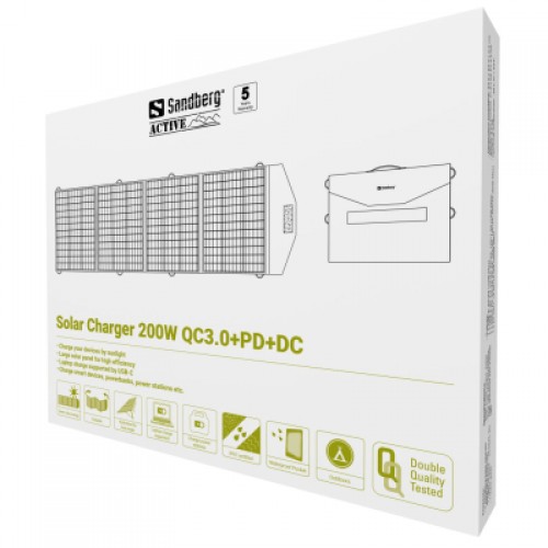 Der Sandberg Solar Charger 200 W ist ein Hochleistungs-Solarmodul, welche das Sonnenlicht direkt in Strom wandelt. Dank der großen Fläche des Moduls erzeugt das Panel genügend Strom für all Ihre Mobilgeräte - auch für Laptops, Powerbanks und PCs. Das Panel ist mit einem Schnelllade-USB-A-Anschluss, einem leistungsstarken USB-C-Anschluss sowie einem DC 5521-Ausgang ausgestattet. Leg das Panel flach hin, oder richte es auf seinem anmontierten Ständer direkt in Richtung der Sonne aus. Robust und wetterfest. Für einfachen Transport und Aufbewahrung ist das Modul faltbar.