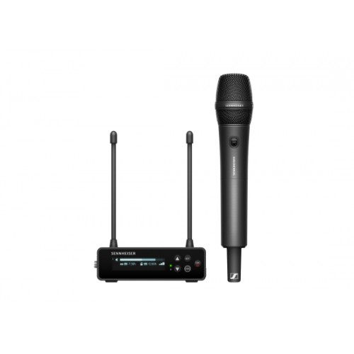 Das Set EW-DP 835 enthält den Handsender SKM-S mit dynamischem Mikrofonmodul MMD 835 (Nierencharakteristik), Es ist ideal für Interviewsituationen und die Aufnahme von Sprache in lauten Umgebungen.