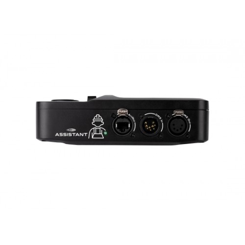Der Showtec Assistant CRMX ist ein vielseitiges Testgerät für DMX-, RDM-, Art-Net-, sACN- sowie Wireless-DMX-Netzwerke mit CRMX- und W-DMX-Protokollen. Das Gerät empfängt und sendet (W-)DMX-Signale, zeichnet DMX-Daten auf SD-Karte auf und spielt diese wieder ab. Der integrierte LumenRadio-Transceiver unterstützt drahtlose Tests. Ein kapazitiver Touchscreen, Fader und Tasten ermöglichen eine einfache Bedienung. Die Stromversorgung erfolgt über einen internen Li-Ionen-Akku mit bis zu 16 Stunden Laufzeit oder per USB-C-Anschluss.