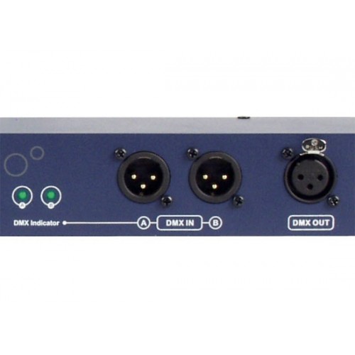 Das Gerät ist an zwei DMX-Desks angeschlossen. Kanal A hat Vorrang. Wenn Kanal A fehlschlägt oder kein DMX hat, übernimmt Kanal B die Show.