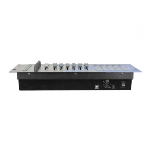 Der ColorCue 2 bietet einen Masterregler, 6 Helligkeitsregler, 6 Farbdrehreglern und 20 Speichertasten für Farben, Chases und Speicherplätze.